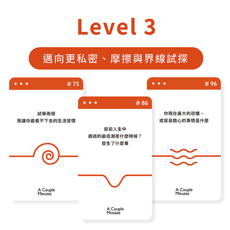 無論是想探索過往、共識尋求,沿著問題脈絡,都好促膝長談,拉近兩人距離!
