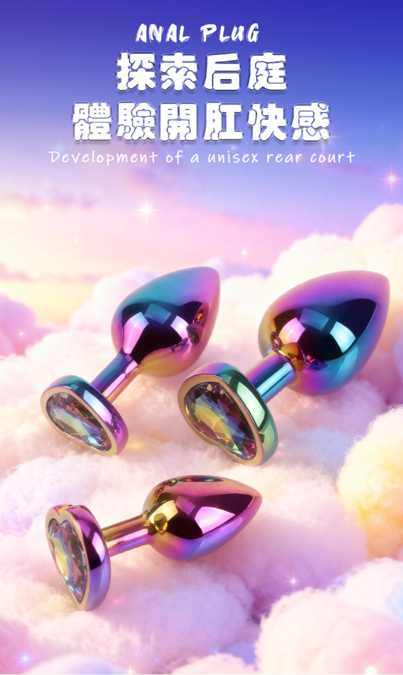 彩虹愛心肛塞組:71mm x Φ27mm、81mm x Φ34mm、95mm x Φ41mm
