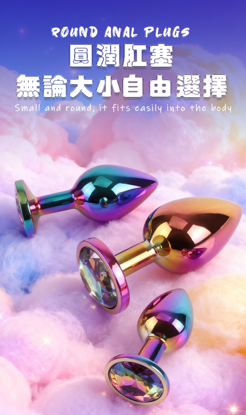 彩虹寶石肛塞組:71mm x Φ27mm、82mm x Φ33mm、95mm x Φ40mm