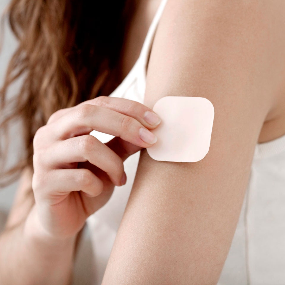 (可維持一個月) 以貼布釋放雌激素與黃體素,一個月要貼三週。