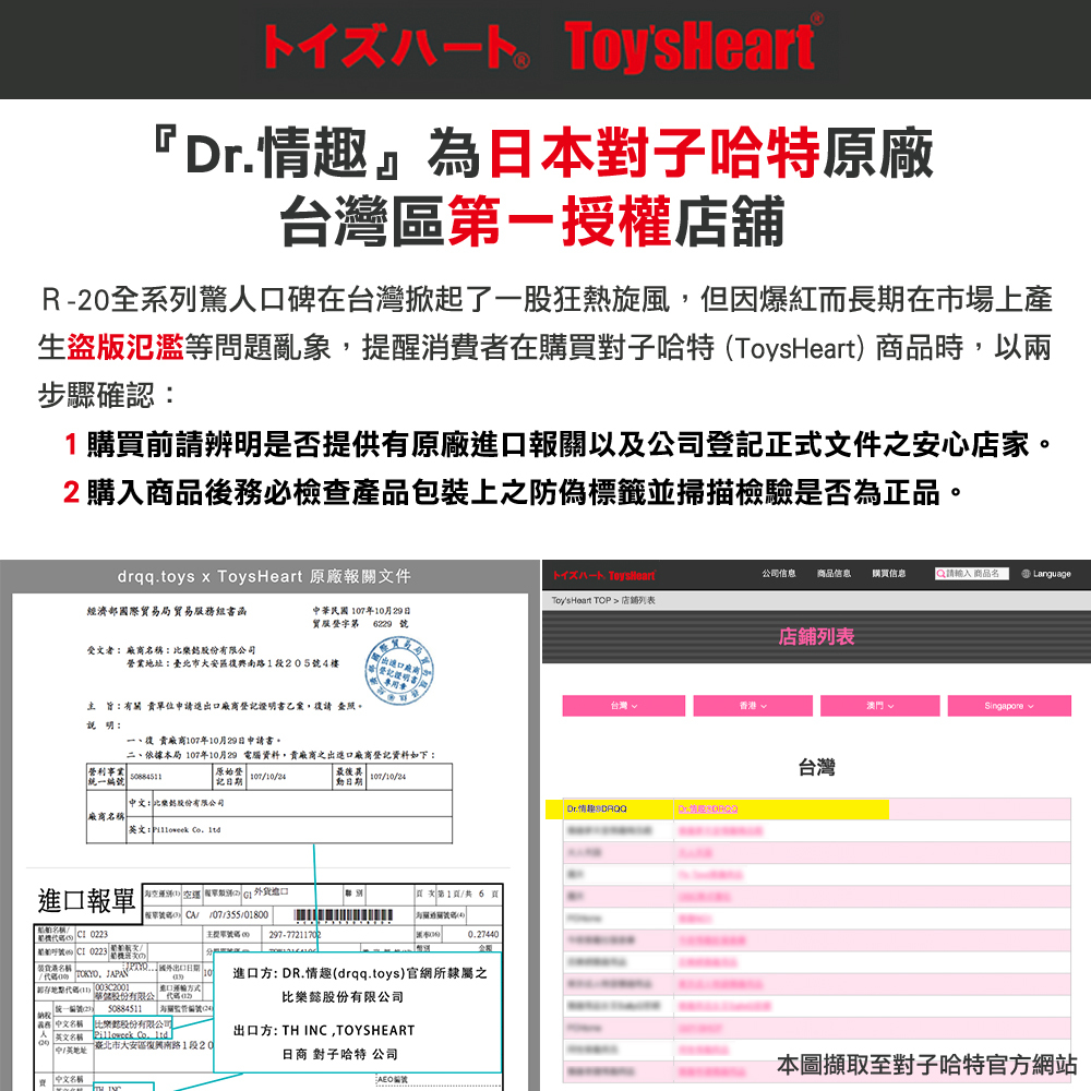 Dr.情趣為「妹汁的台灣總代理」,如果在市面上看到比Dr.情趣更便宜的價格,幾乎可以確定是盜版假貨。