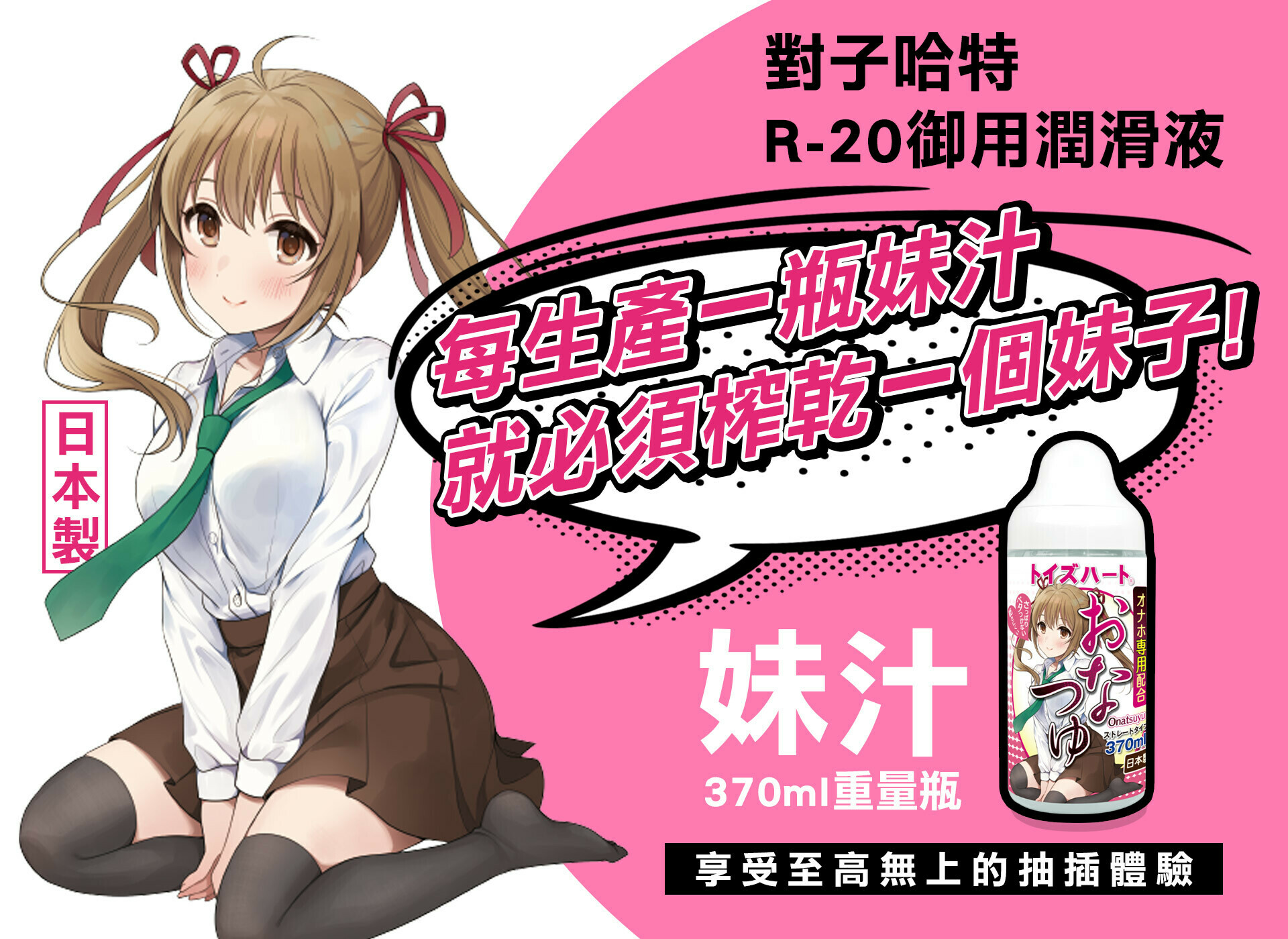 對此,日本知名飛機杯品牌「toysheart對子哈特」為了讓廣大男性們能完美的體驗每一款飛機杯獨特的細節刺激,以最溫和的成分調配出這款全球爆賣200萬罐的飛機杯專用潤滑液「妹汁潤滑液」!