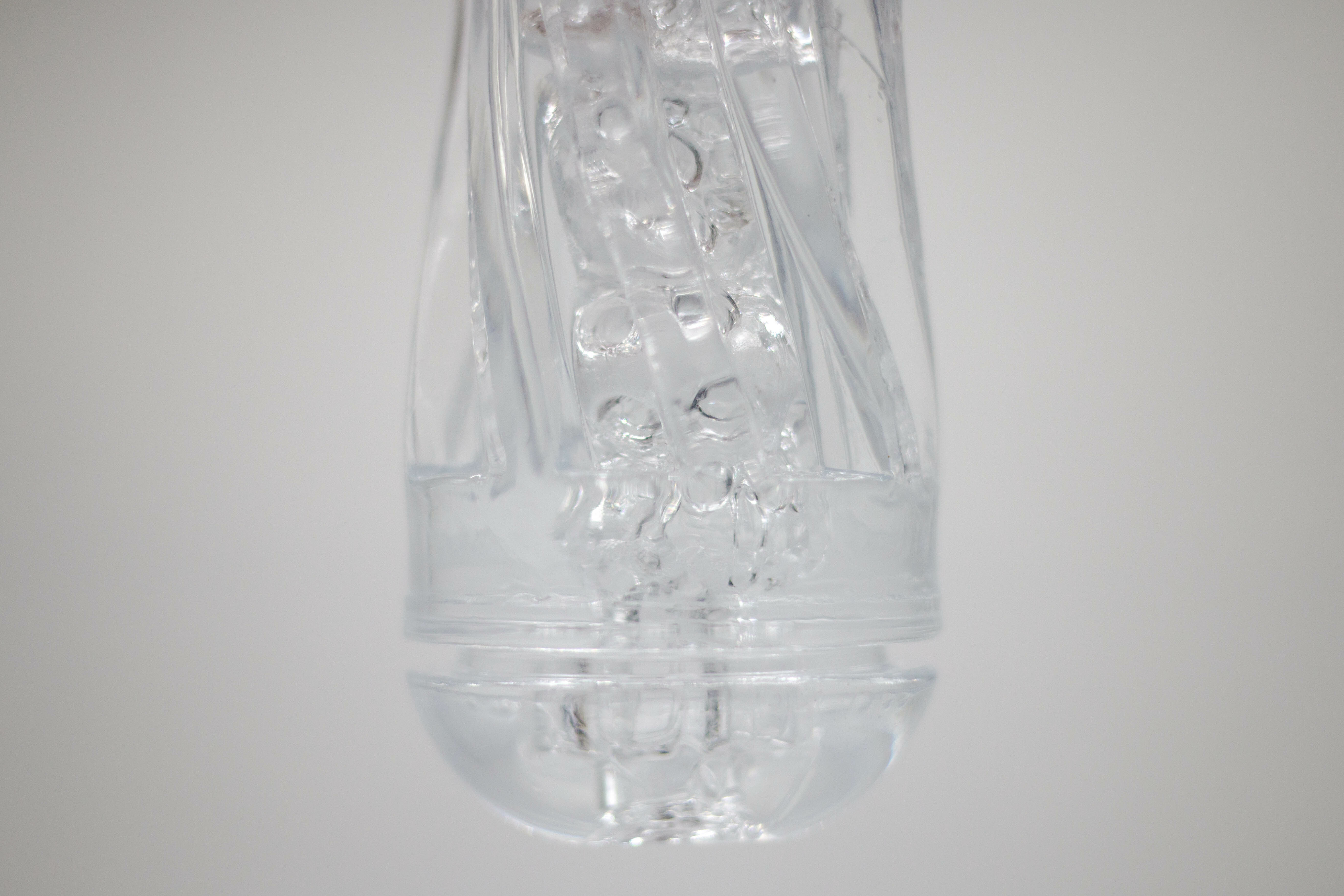 無論是這款晶瑩透明的純精款還是另一款仿真人膚色的純淫款,兩種純愛杯的本體材質都號稱是使用了頂級的TPE(熱塑性橡膠)來製作,這種材質的特殊之處在於它擁有高度的彈性與韌度,而另一項很大的優點是它不易出油!如果你也使用過一些超柔軟的飛機杯就應該知道,雖然柔軟度、包覆感極佳,但這類的飛機杯最大的缺點就是容易出油,在實際體驗時其實蠻扣分的。