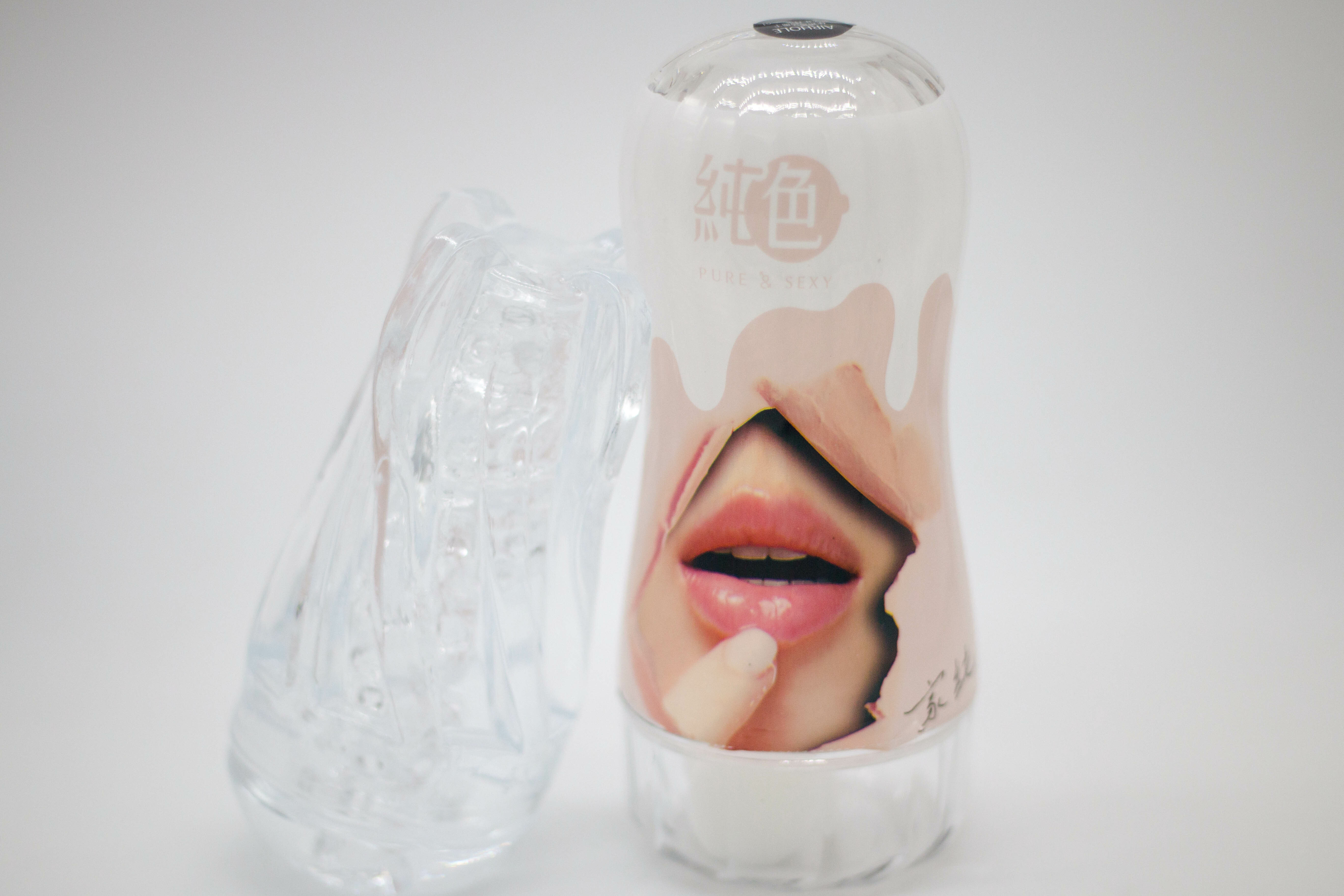 如果說第一印象決定了大部分的感官,那這款「純精款」純愛杯絕對能穩穩抓住男人的所有視線。流線型收腰塑膠外殼上印著一個粉嫩的嘴唇,手指輕撫在唇邊的模樣極盡挑逗,從上方流洩而下的白色液體暗示著有什麼血脈噴張的遊戲就要發生。