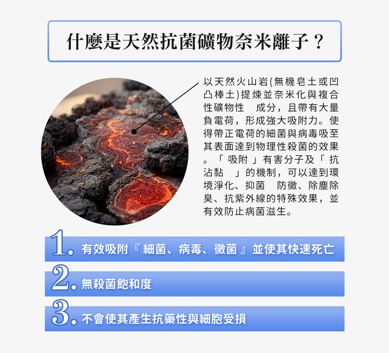 台大生物博士合作研發,獨家產學合作抗菌成份,純天然抗菌離子成份