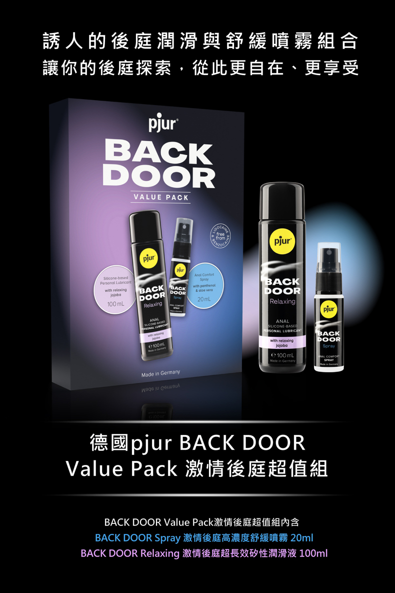 pjur 激情後庭Relaxing矽性100ml + Spray舒緩噴霧20ml 激情後庭超值組