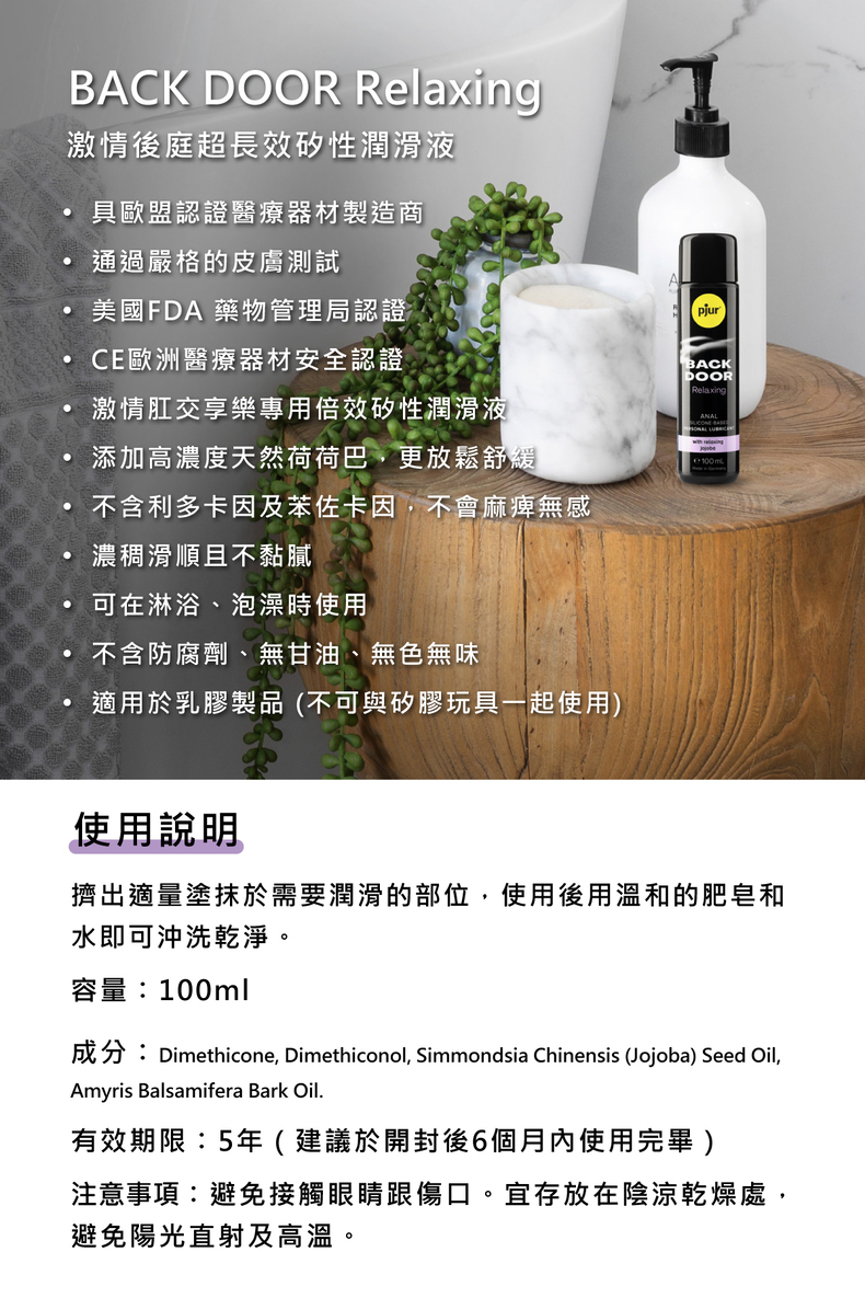◼︎BACK DOOR Relaxing:擠出適量塗抹於需要潤滑的部位,使用後用溫和的肥皂和水即可沖洗乾淨。