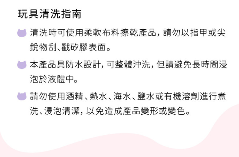 ◼︎ 請使用中性清潔劑,避免使用酸鹼性清潔劑、熱水或酒精「Dr.情趣|玩具清潔保養組」