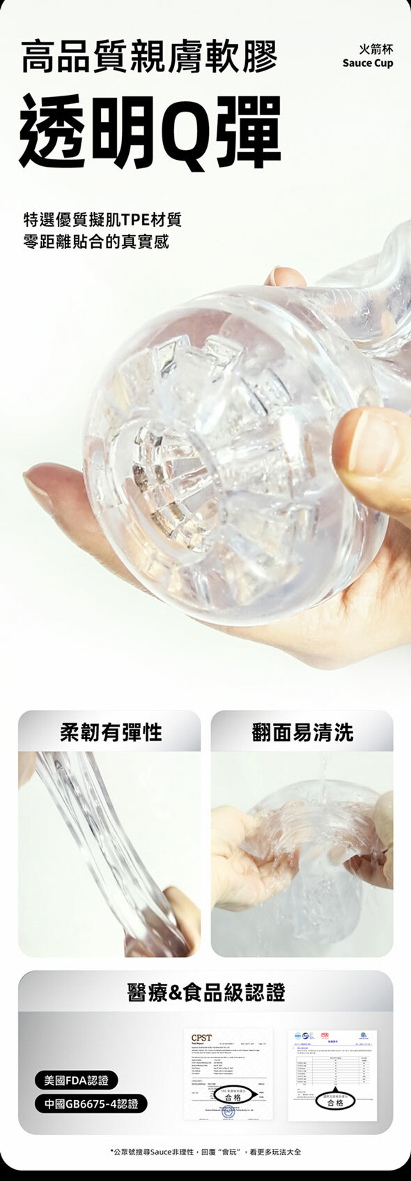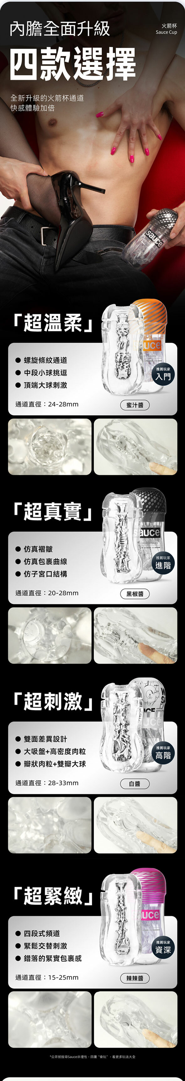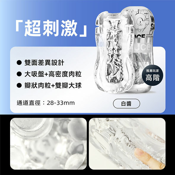 用料厚實壁厚增加40%、快樂性感加倍,緊致大波浪通道,交錯縱橫吸盤按摩頭,漩渦榨吸波濤洶湧!