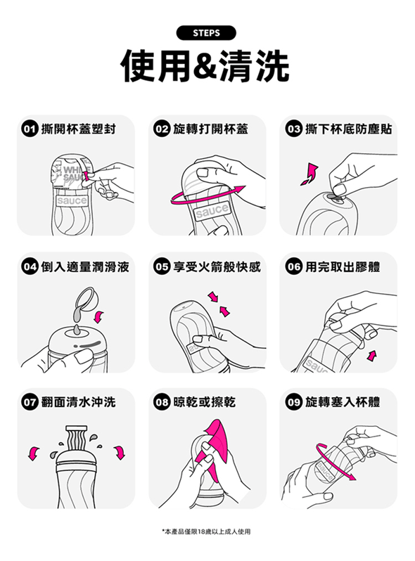 矽膠商品翻開清洗,恐有損飛機杯彈性,可能造成飛機杯提早鬆弛,甚是造成洞口、內部撕裂喔!清洗後,以乾淨的毛巾或是廚房紙巾把水吸乾後,放著風乾即可。並在商品表層撲上爽身粉,避免飛機杯本體出油發黏,同時也可以延長使用壽命喔!