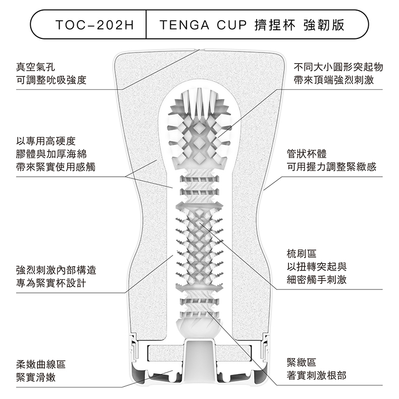 TENGA CUP一次性飛機杯為TENGA所有產品內最方便、CP值最高的產品,內部已注入滿滿的潤滑液,拆封後即可享用,享用完即可丟棄,這種射後不理的霸道感,只有TENGA CUP給得起!