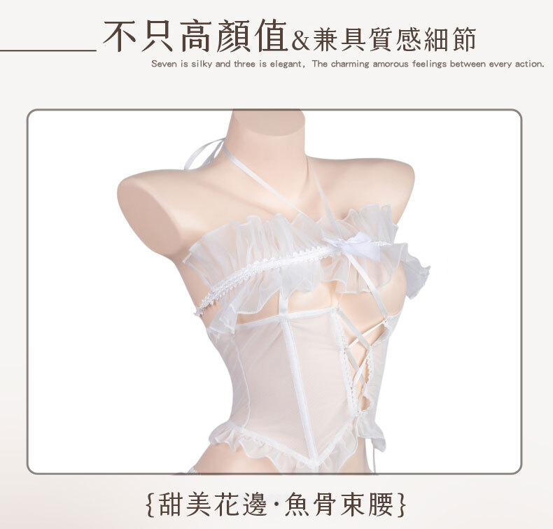 白月綁心魚骨束腰馬甲套裝