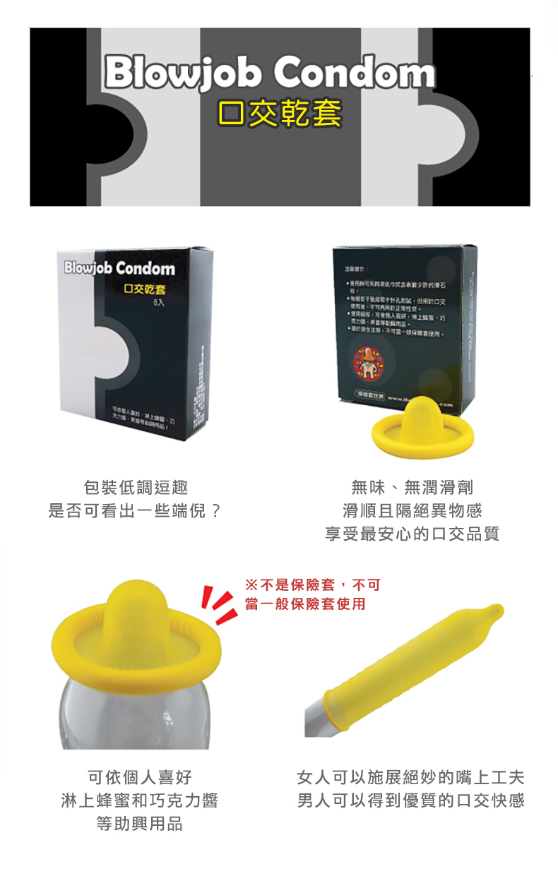 無嗅、無味、無油、衛生、安全,享受最好、最安全的口交品質,可依喜好淋上蜂蜜或巧克力醬,增加趣味。