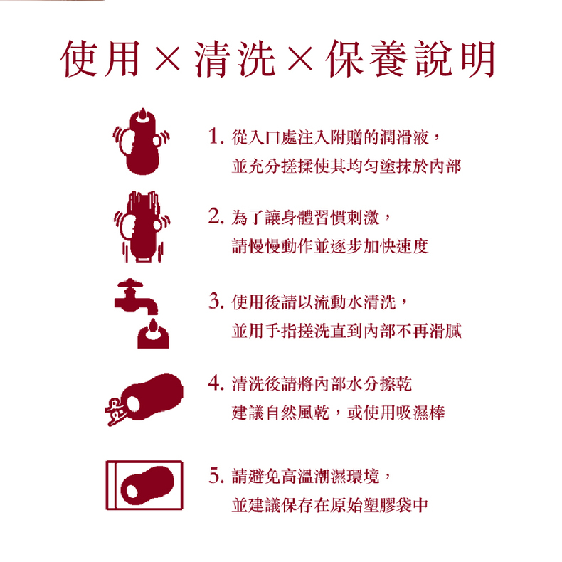 ◼︎ 切勿使用油性及矽性潤滑液,會導致矽膠表面損壞,建議使用水性潤滑液「妹汁|飛機杯專用潤滑液」