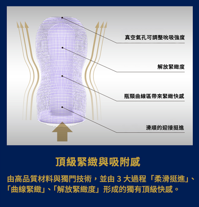 維持曲線形狀特徵,以進化的內部細節,能讓您享受到強力吸吮快感