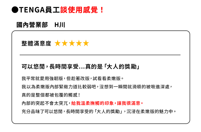圖像相關說明:「此頁面所使用之TENGA商品圖像版權,均屬於TENGA日本總公司及台灣分公司所有,本頁面以正當申請程序授權使用,禁止任意轉載及變更。」